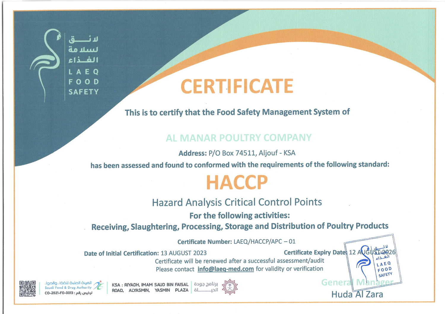 Proudly holding the HACCP Certification, ensuring the highest standards of hygiene, safety, and quality control in every step of our production process.